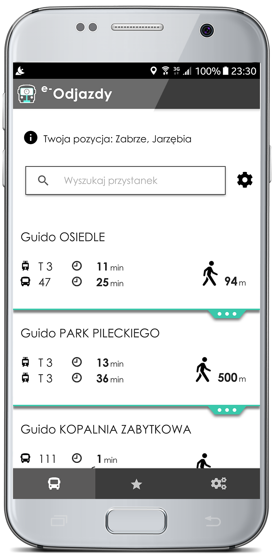 • Automatyczne wyszukiwanie najbliższych przystanków